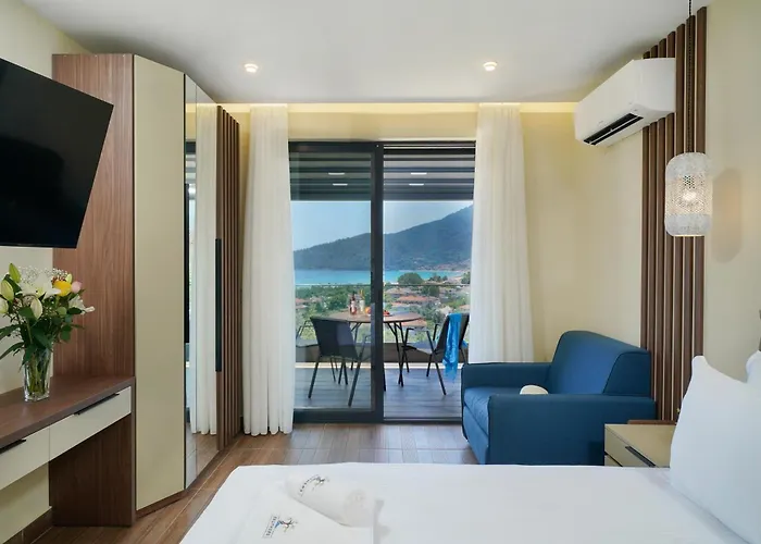Das Aparthotel heißt alle Gäste, knapp 2 Kilometer vom Saliara Beach entfernt, willkommen. Kulturelle Sehenswürdigkeiten in der Umgebung sind das Archäologische Museum von Thasos (7 km) und das Sotirelis Olivenölmuseum (4 km). Eine 5-minütige Fahrt bringt Sie zum Marble Beach.